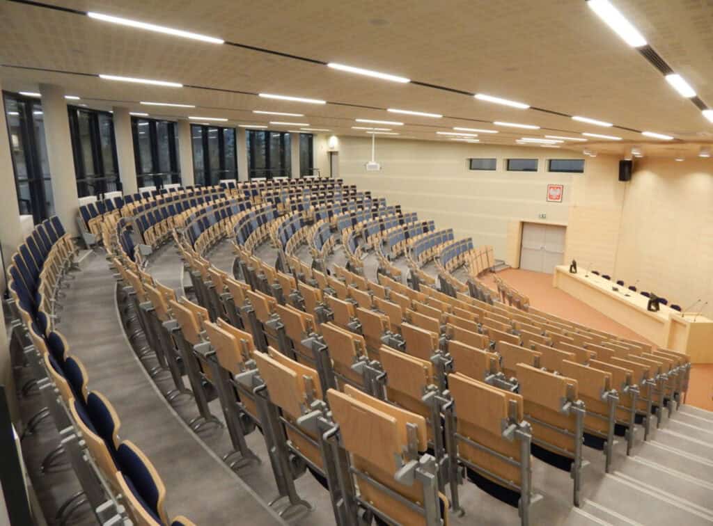 Zastosowane rozwiązania zapewniają komfort użytkowania, trwałość i zgodność z aktualnymi normami dla budynków oświatowych.